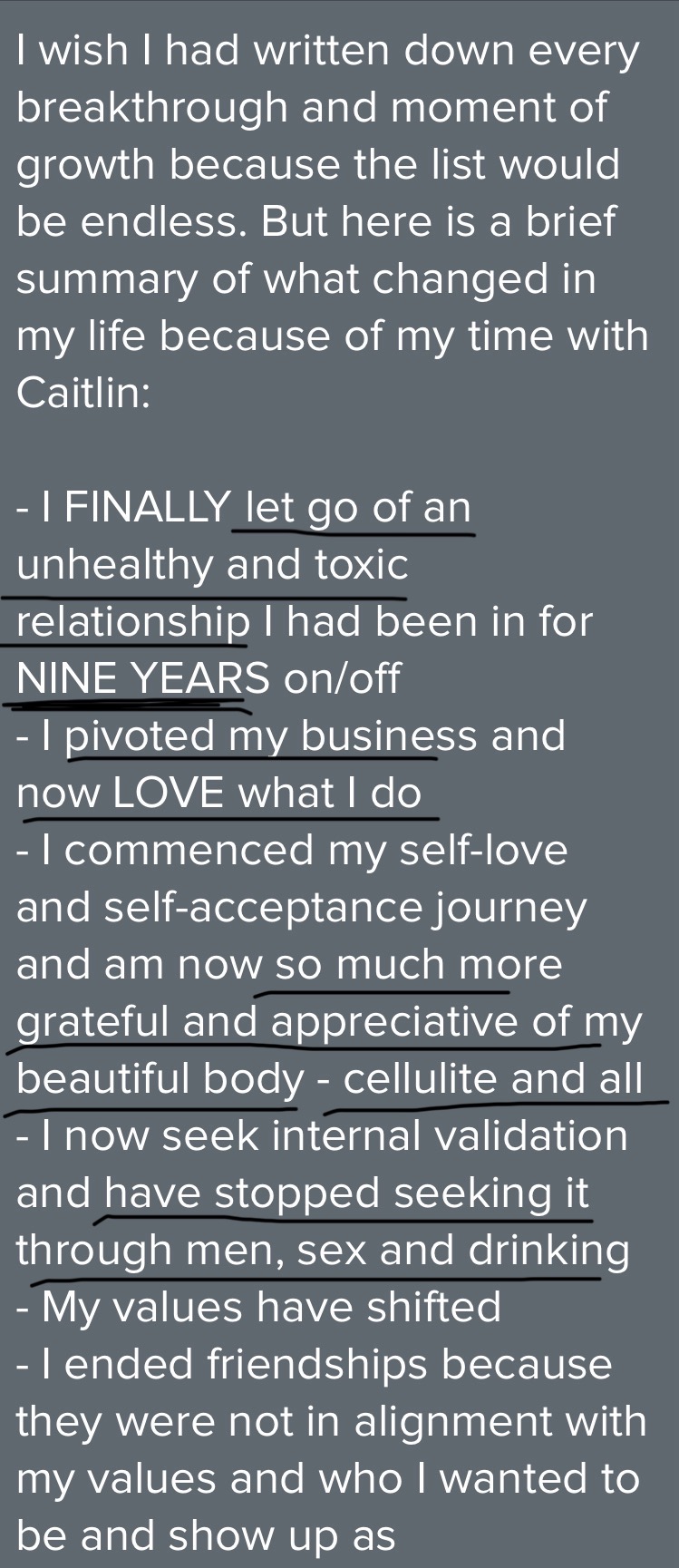 — Louise - NSWI watched myself almost blow up a really good relationship because of the pattern. After this I finally understood what was actually happening.